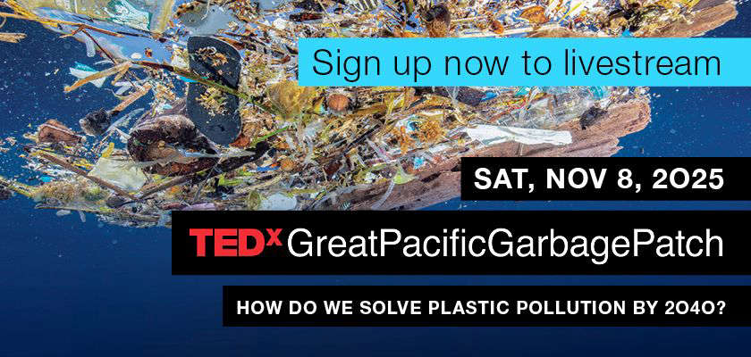 On Sat. November 8, 2025, TEDxGreatPacificGarbagePatch Livestreamed From Santa Monica, CA, How Do We Solve Plasric Pollution By 2040? 9am-5pm (Click To Register)
